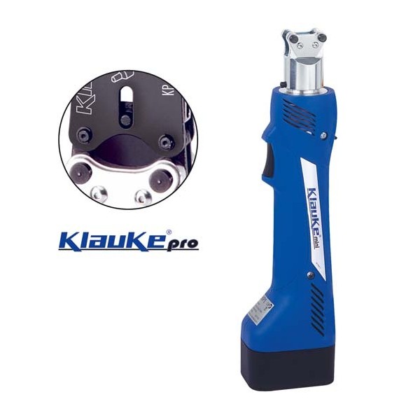 Presse de sertissage électro-hydraulique multifonction Outil de base de la série Klauke ‘‘Pro-Série’’ design ergonomique pour une utilisation d’une main faible poids Caractéristiques : tête pivotante 360° pour têtes de sertissage interchangeables ‘‘Pro-Série’’ arrêt instantané retour automatique après sertissage retour manuel en cas de nécessité accumulateurs NiMH performants et écologiques